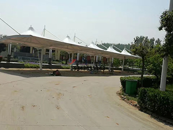 膜结构自行车棚材料有很多种,常用膜材有:PVC和PVDF建筑膜材其基材为聚酯类、聚酰胺类的纤维织物。ETFE建筑膜材由ETFE(乙烯-四氟乙烯共聚物)生料直接制成。PTFE膜材是在超细玻璃纤维织物上涂以聚四氟乙烯树脂而成的材料。膜结构自行车棚布材料的使用寿命可长达10~25年。
